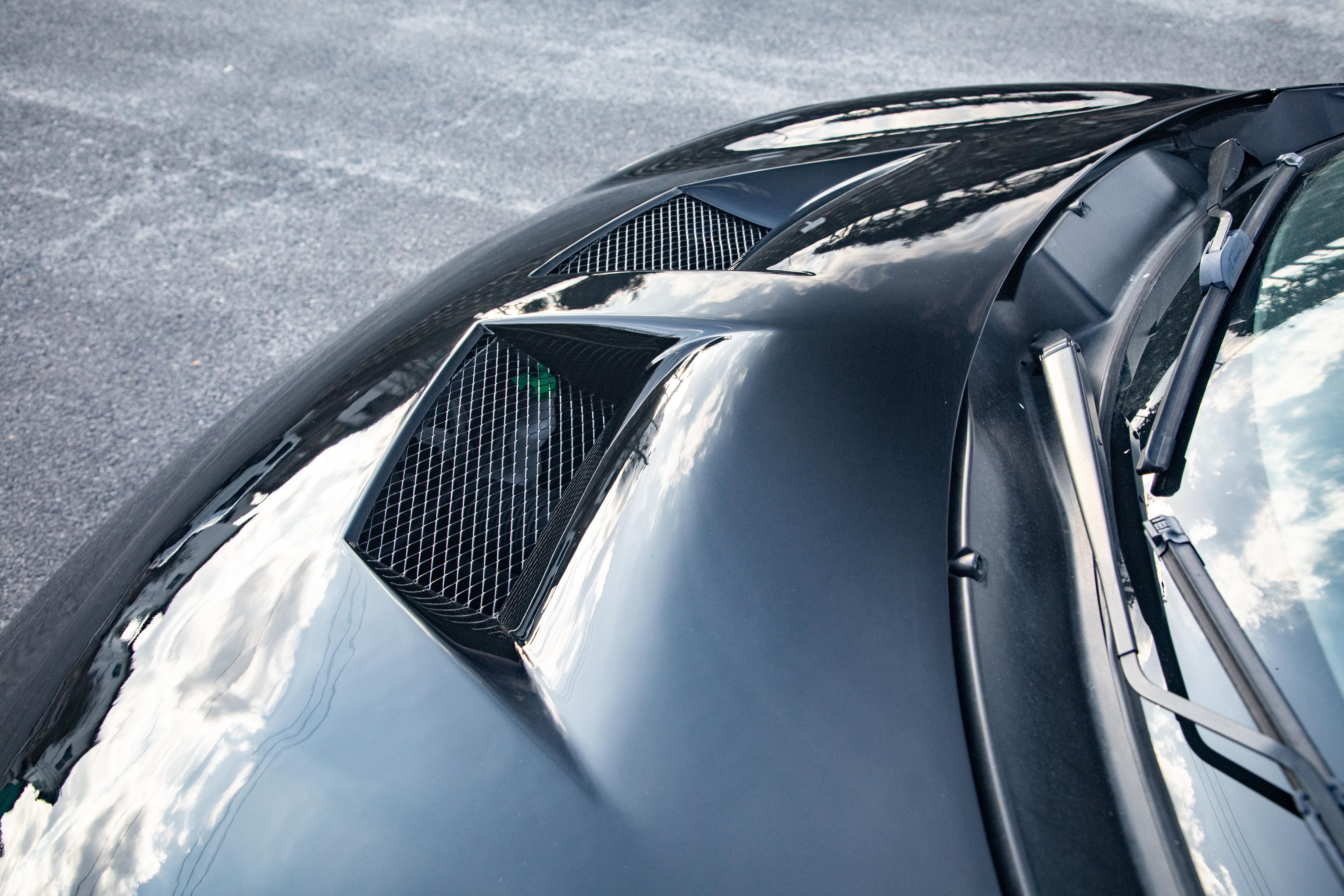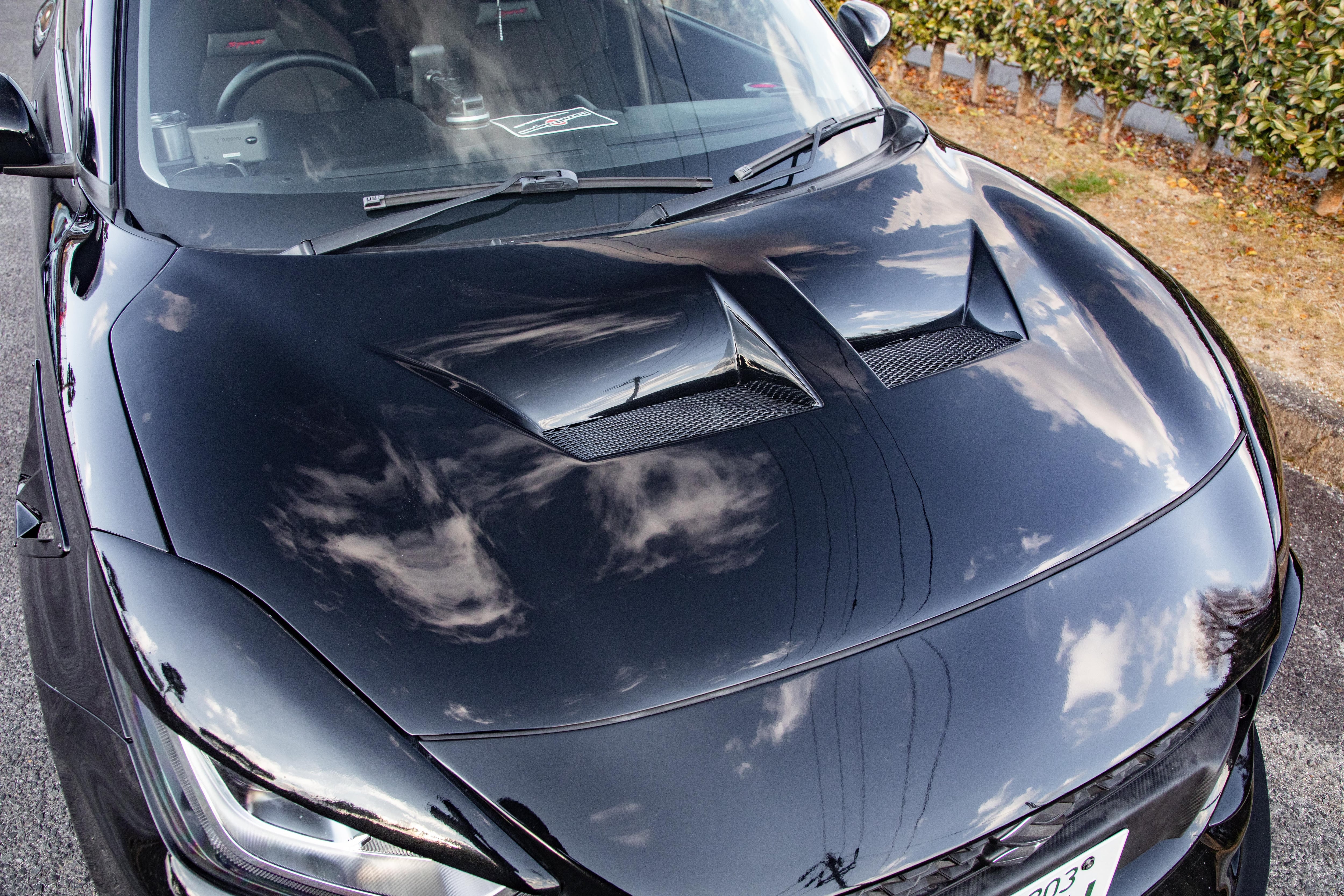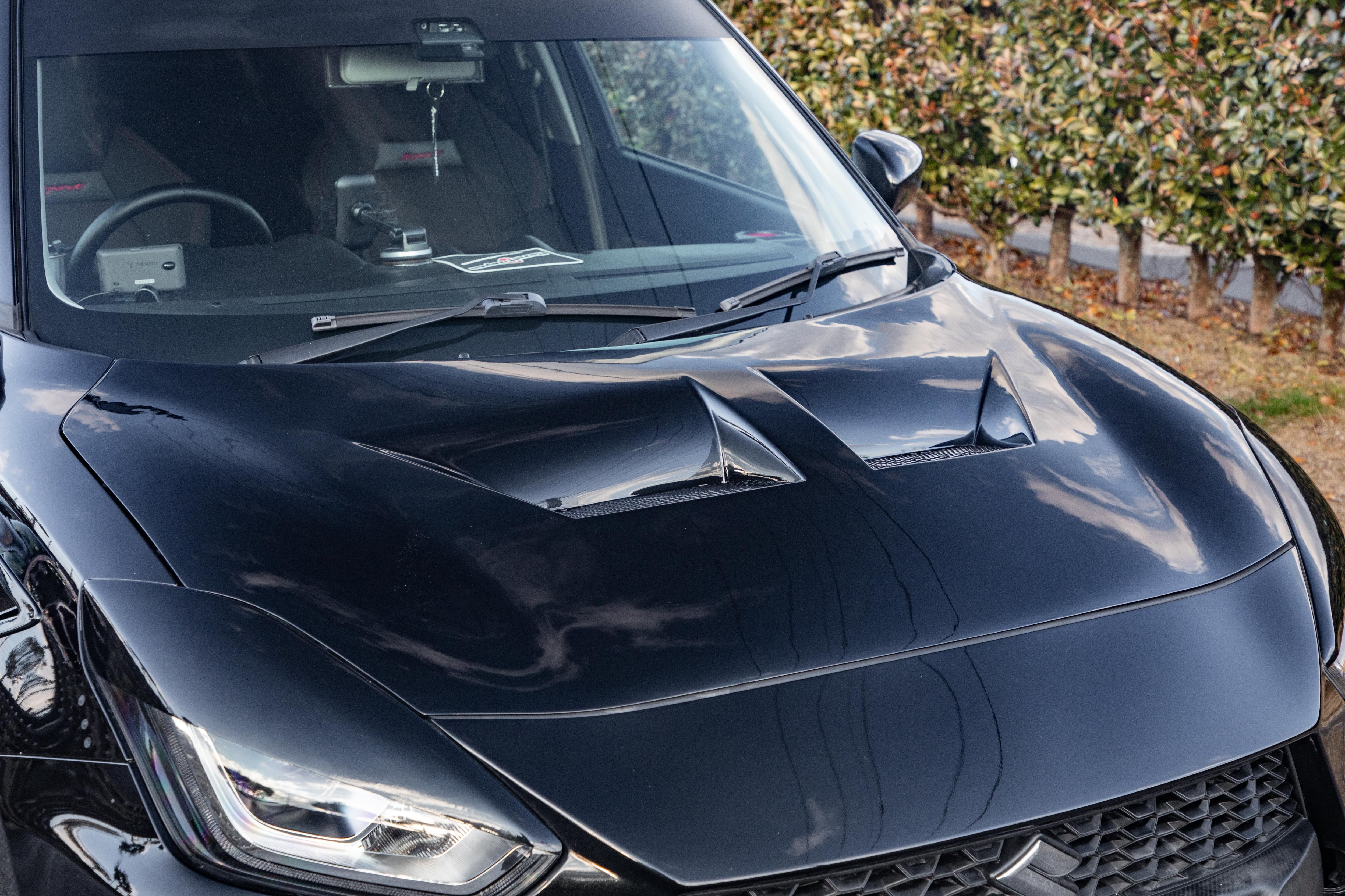 ボンネット中央部は純正ボンネットより2センチ程度盛り上げており、立体的なダクトデザインを実現しました。